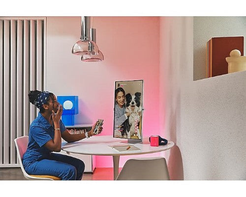 A slim metal design that works for you in any space, with a height-adjustable screen that tilts for the best angle and ultimate utility. Pivot the screen 90 degrees to view long documents with less scrolling. Plus, you can keep your desk clutter-free and clean with VESA-compatible mounting.