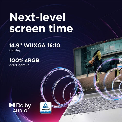 Every scene is more immersive and fuller on the spacious display, boasting a tall aspect ratio and an expansive active area ratio. Your content will be luxuriously vivid in WUXGA resolution and full color gamut, and striking on up to a VESA DisplayHDR 500 True Black-certified OLED display. And thanks to TÜV Low Blue Light, your work or entertainment marathons will remain comfortable for your eyes. Together with dual speakers certified by Dolby Audio™, this laptop harmonizes thrilling sights and immersive sound.Go-anywhere productivity