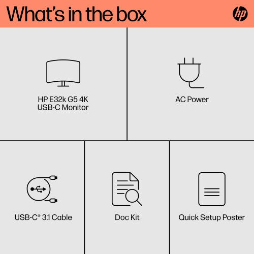 Uniquely designed to deliver incredible visuals and extended flexibility, the HP E32k G5 4K USB-C Monitor redefines precision, so there's nothing between you and your best. Stylishly crafted with your comfort and the planet in mind, this 4K display is a powerhouse of productivity.