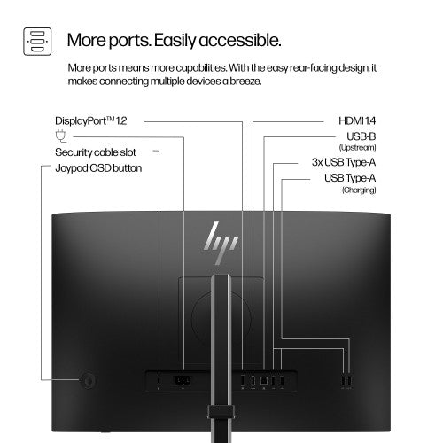 See and do more on your screen with a 3-sided borderless with micro-edge bezel design that maximizes your viewing area for a sleek design and virtually seamless dual-monitor setups.More Ports. Easily Accessible.