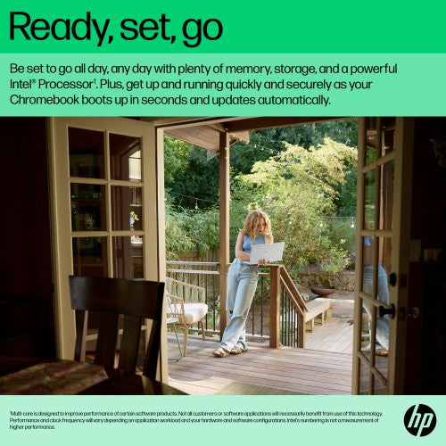 Power, speed, and securityThe sleek, durable HP Chromebook delivers prime power for productivity with a large, high-resolution display, fast memory, ample storage, and all-day battery life. Enjoy fast bootups and automatic updates, built-in virus protection, plus stay productive with the latest Wi-Fi technology[2] and access to tons of apps in the Google Play Store[3].