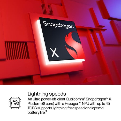 An ultra power-efficient Snapdragon™ X Platform (8 core) provides lightning-fast speed and optimal battery life with a Hexagon™ NPU and Adreno™ GPU.[5]Security is your top priority